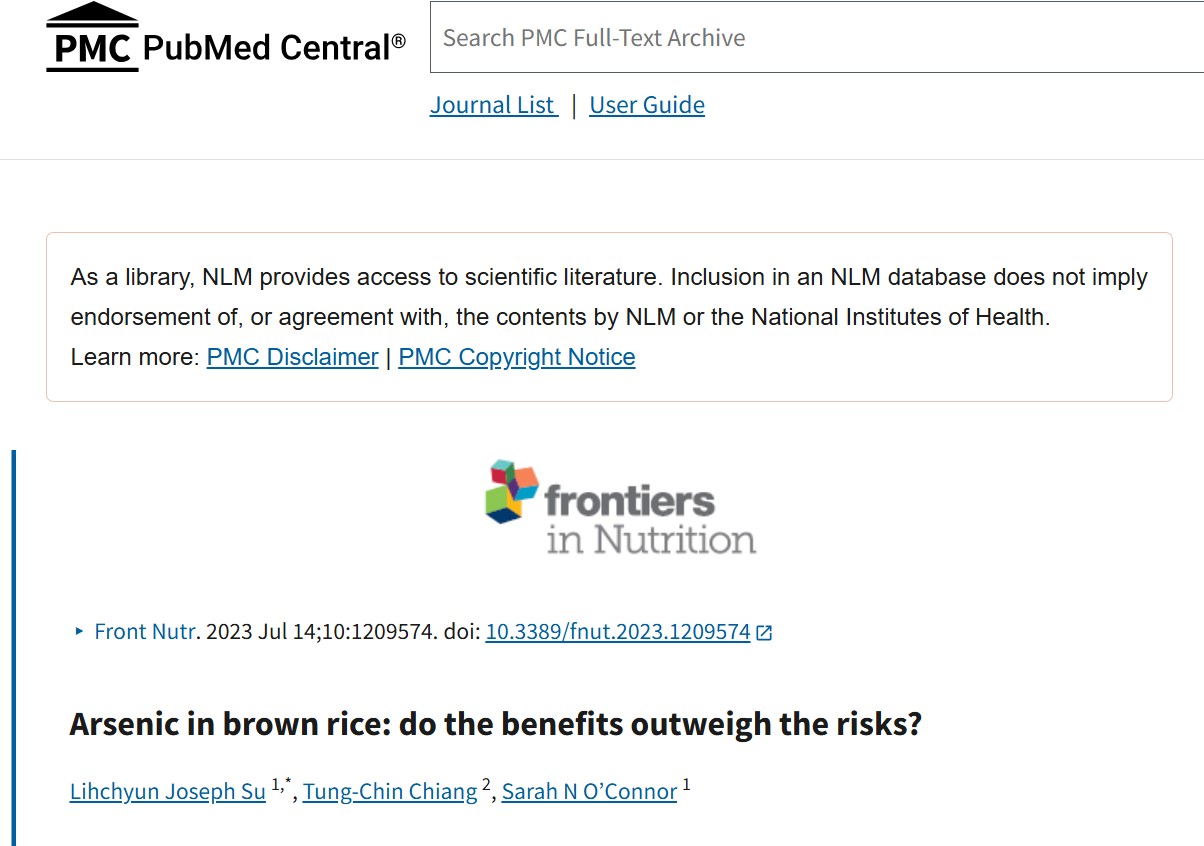 Arsenic in brown rice: do the benefits outweigh the risks? – PMC (Frontiers in Nutrition 2023)